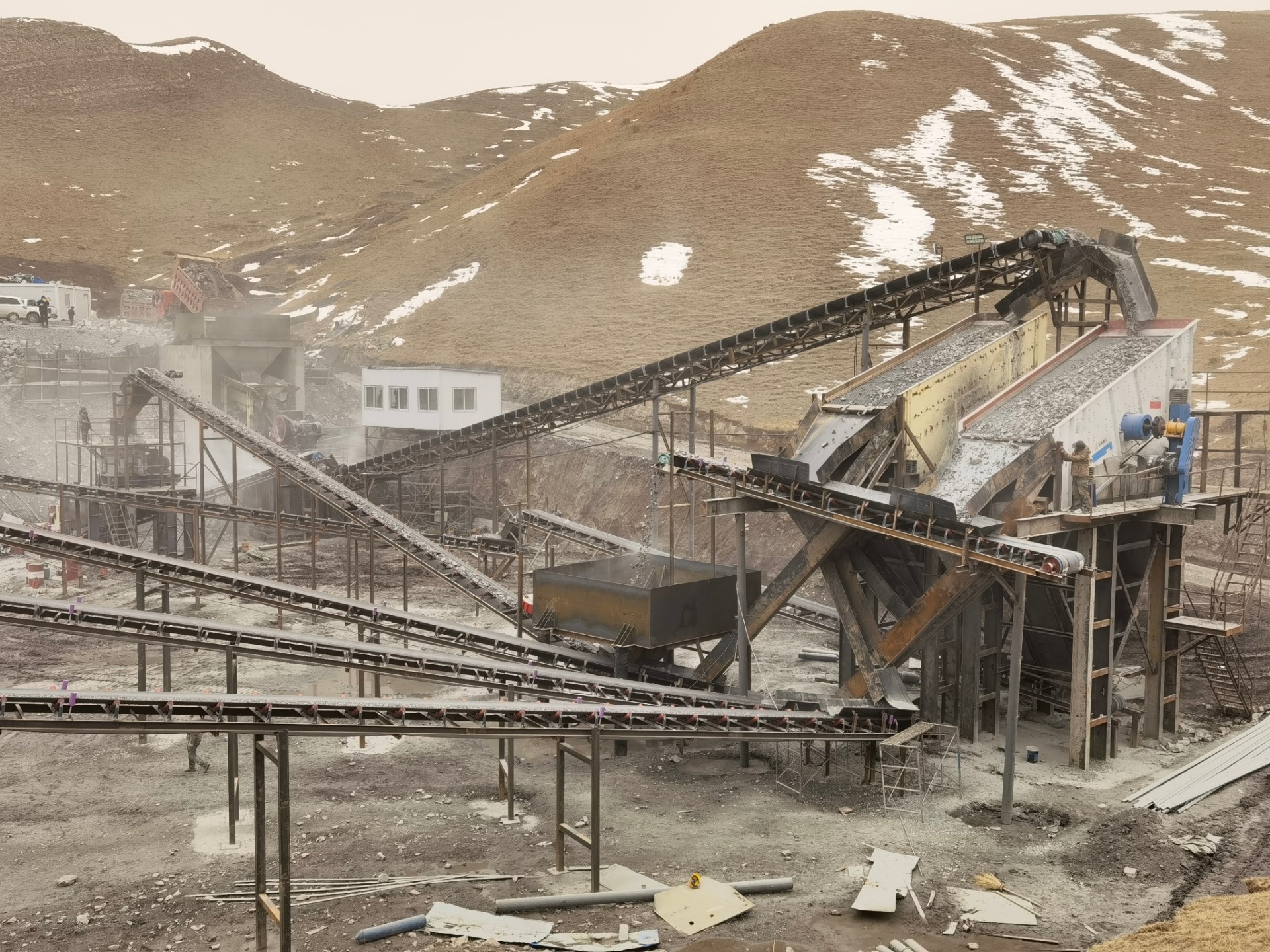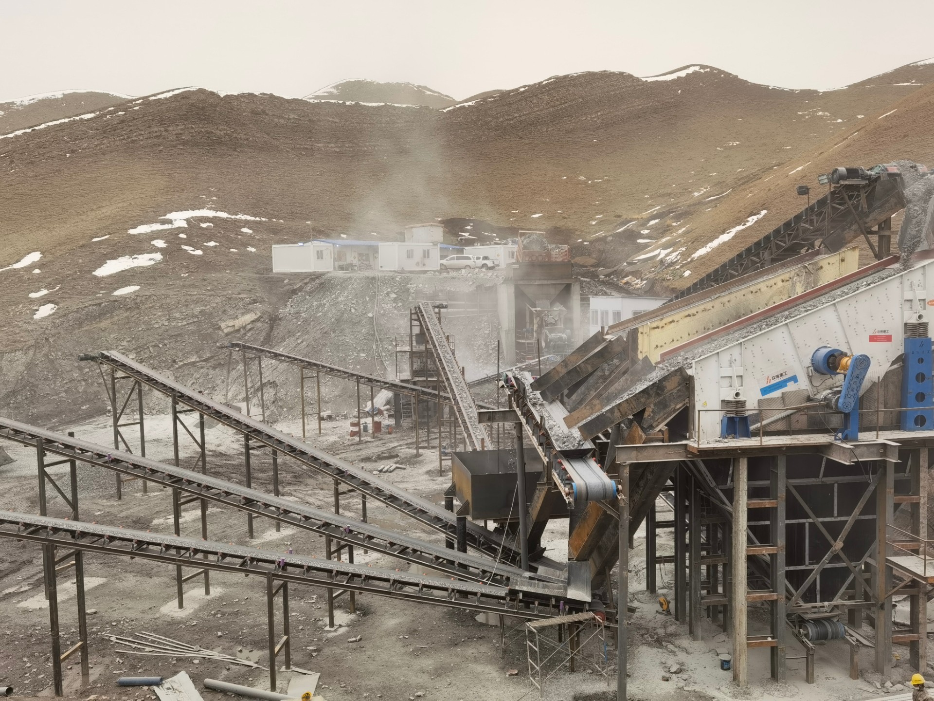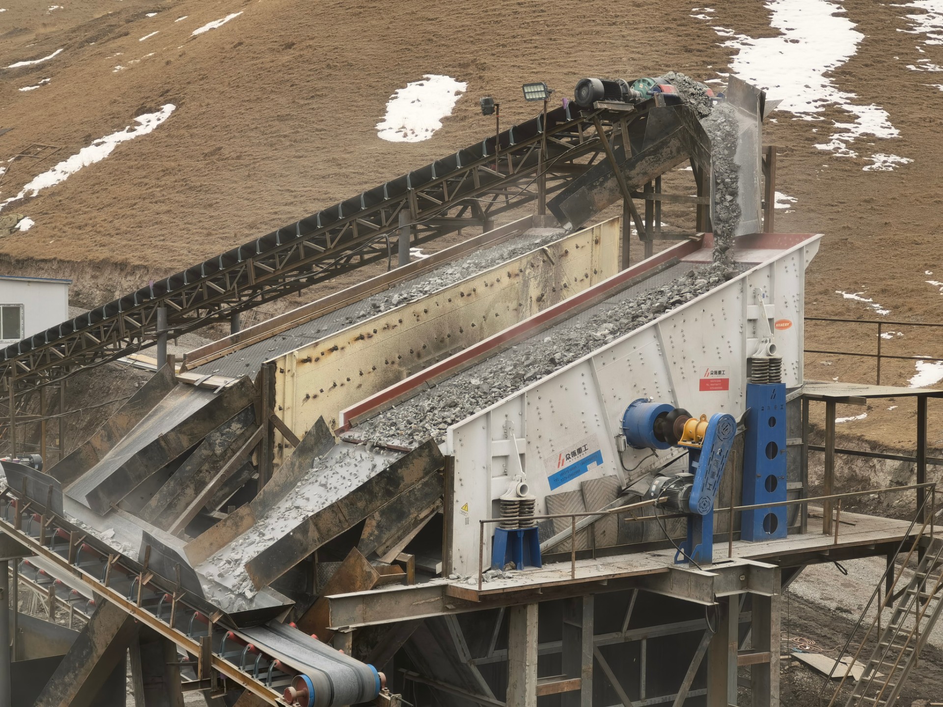 設備配置:喂料機、歐版顎式破碎機、多缸圓錐破碎機、稀油振動篩、