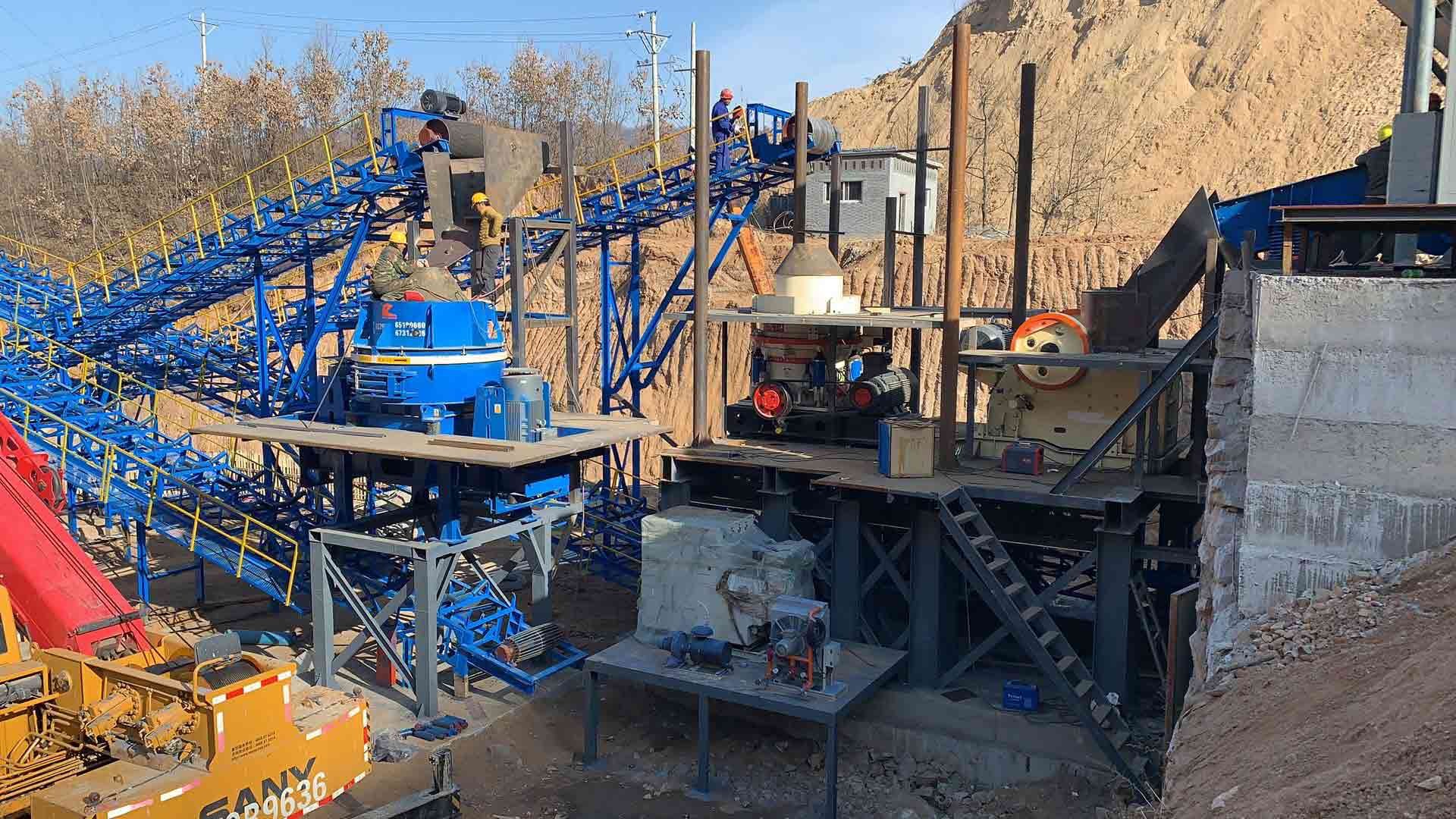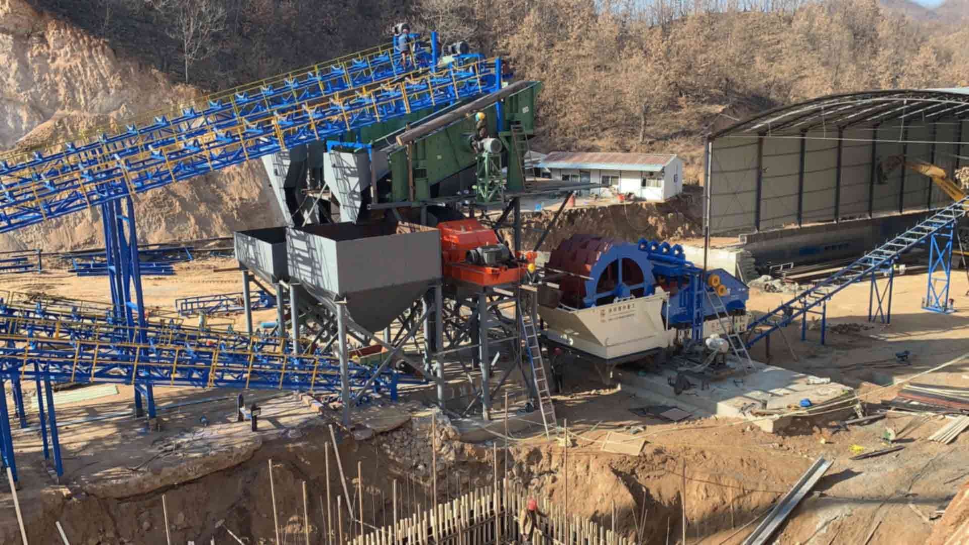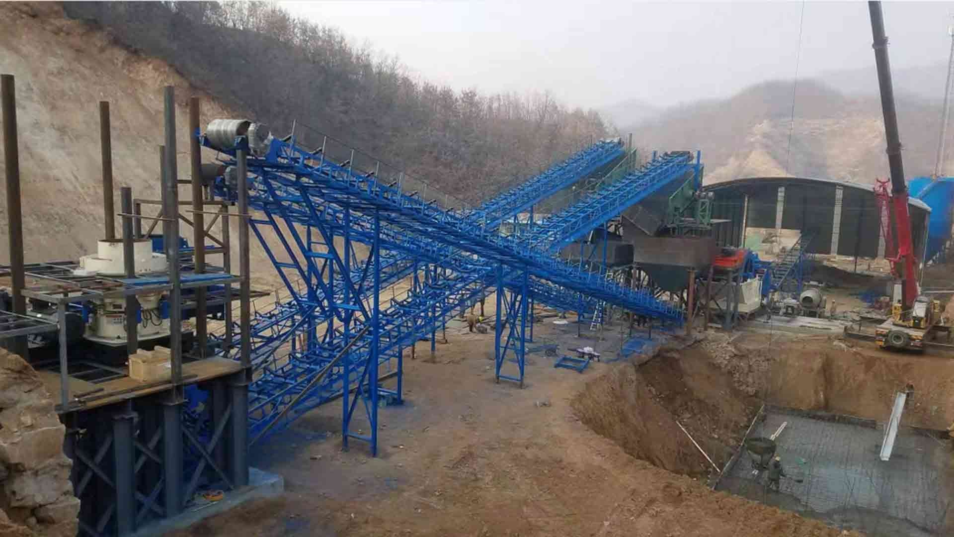 設(shè)備配置:喂料機(jī)、顎式破碎機(jī)、圓錐破碎機(jī)、振動(dòng)篩、制砂機(jī)、洗砂機(jī)、污水罐
