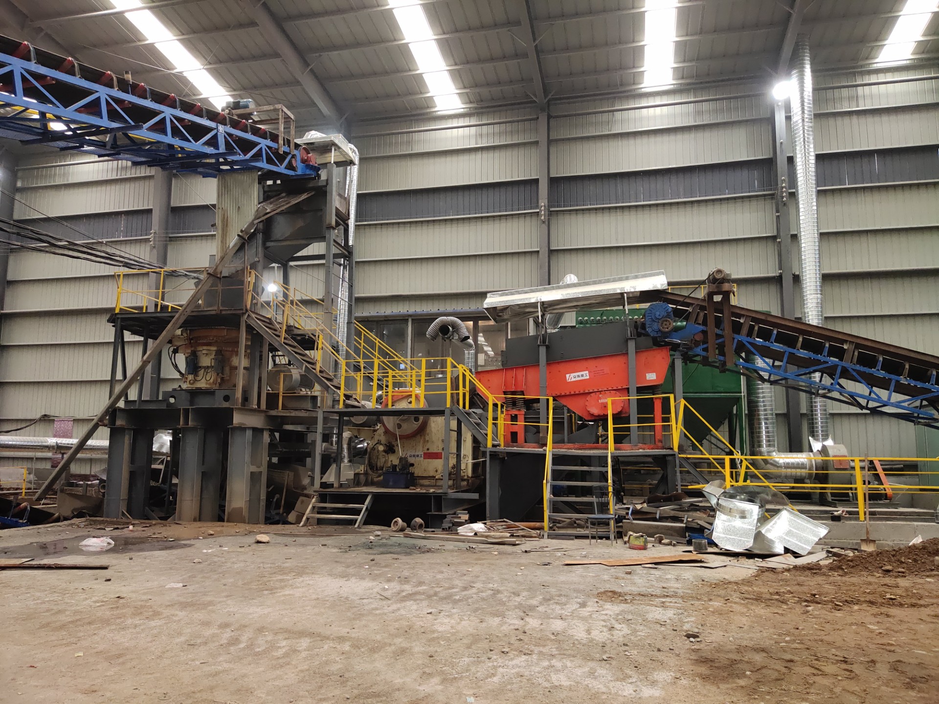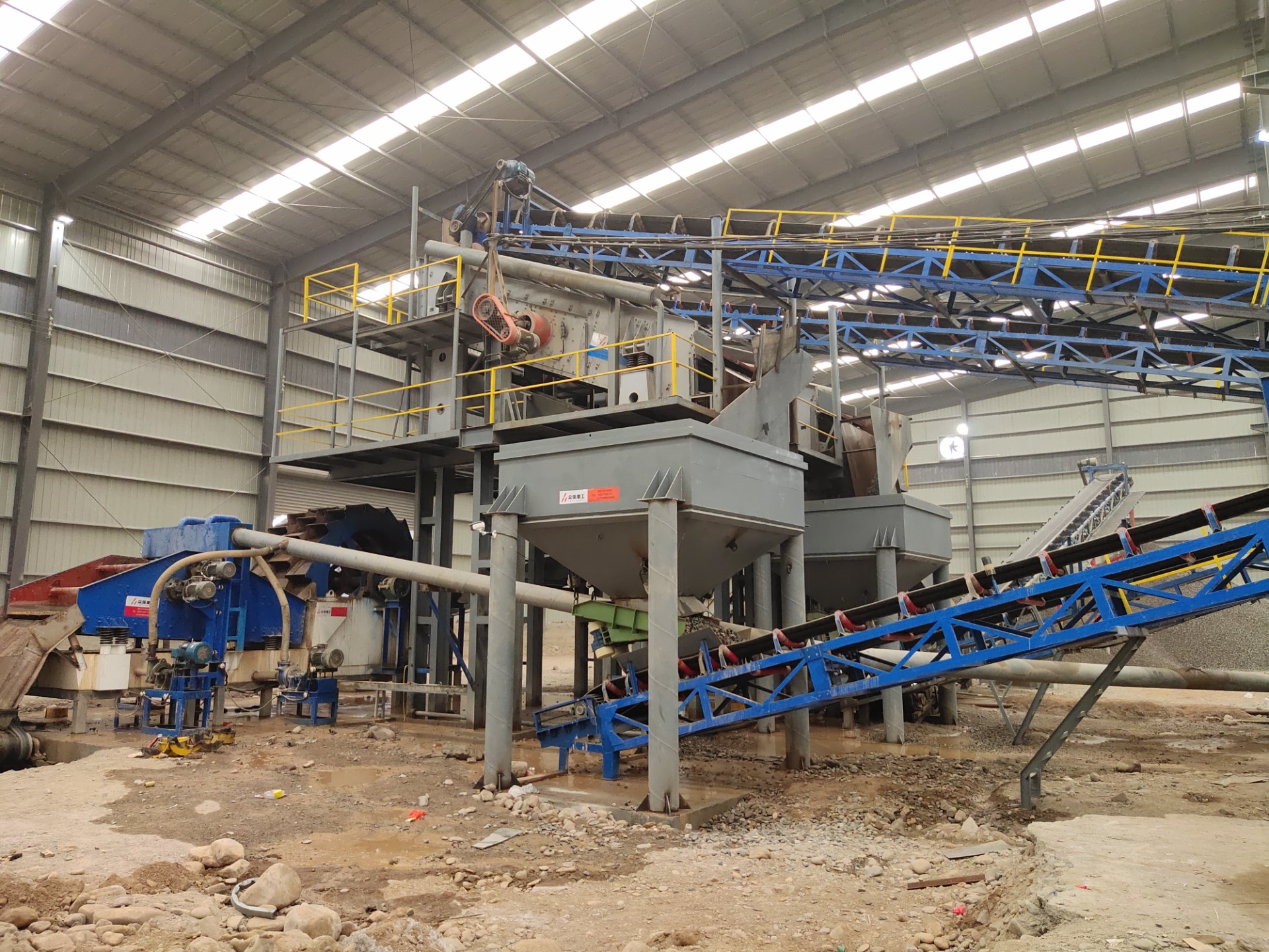 設(shè)備配置:喂料機(jī)、顎式破碎機(jī)、圓錐破碎機(jī)、振動(dòng)篩、制砂機(jī)、洗砂機(jī)、污水罐